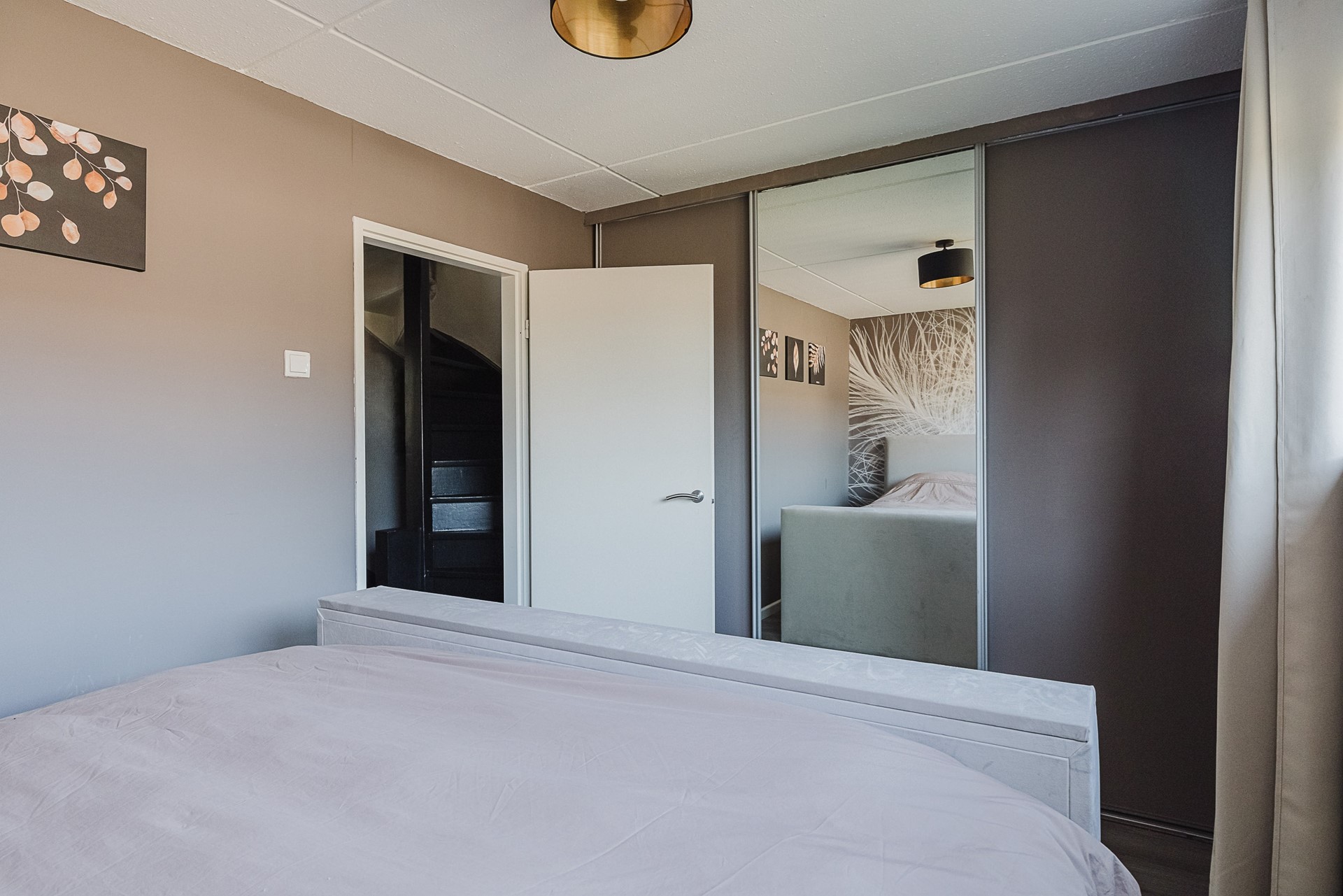 Slaapkamer I is gelegen aan de voorzijde van de woning en strekt zich uit over de breedte van het huis. Deze slaapkamer is voorzien van een grote vaste (kleding)kast (blijft achter).