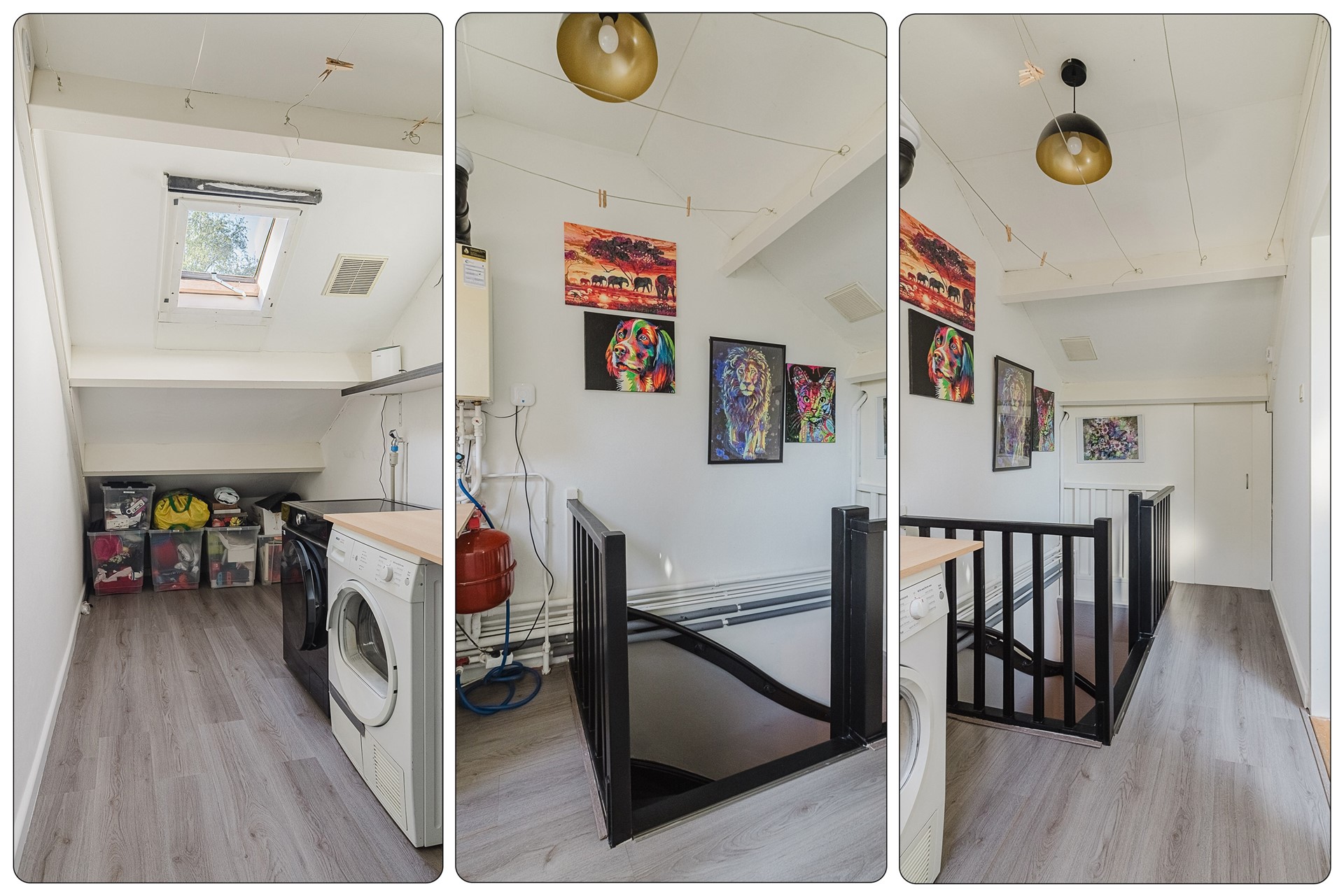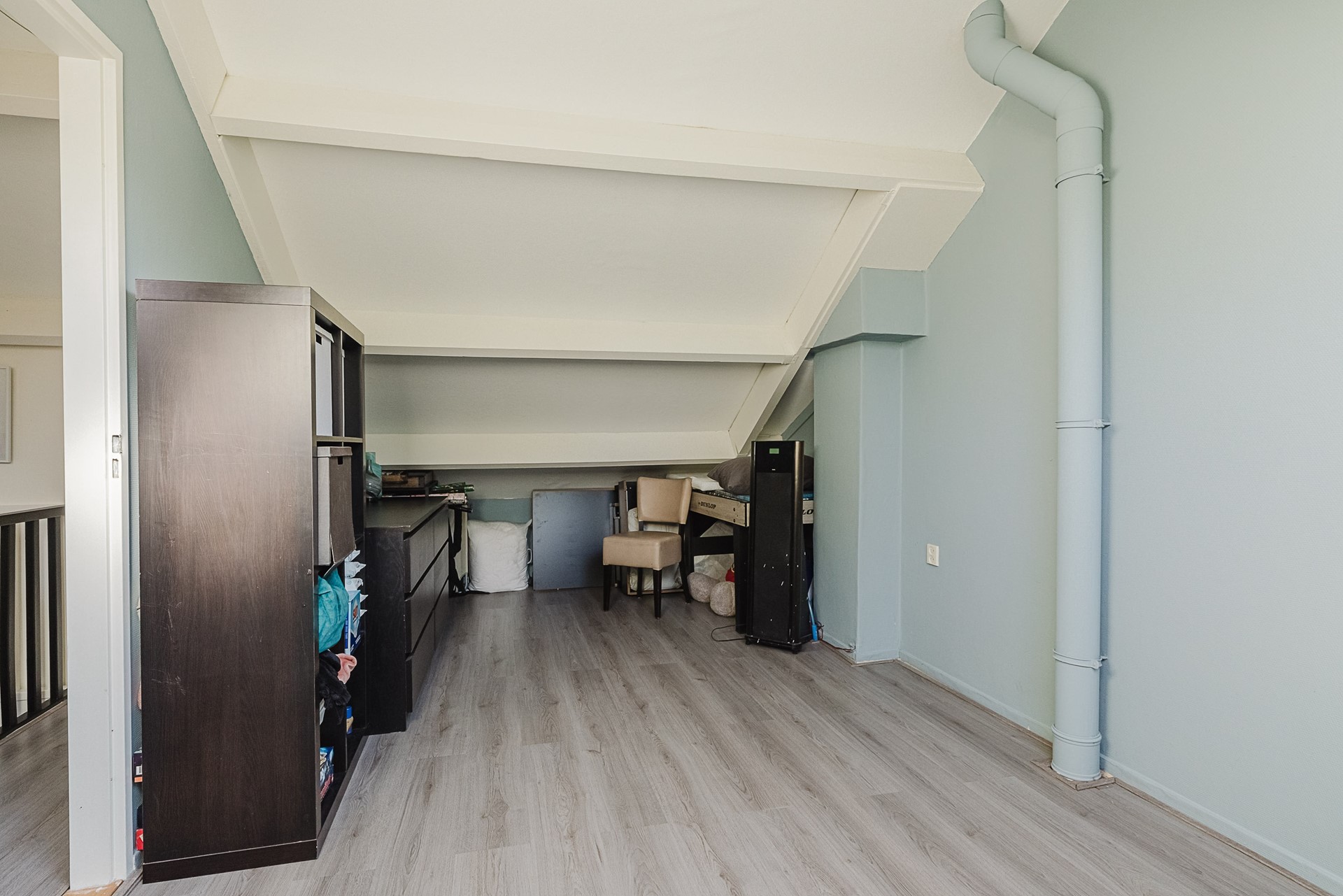 Overloop met bergruimte achter de knieschotten, opstelplaats mechanisch ventilatiesysteem, cv-ketel, aansluitpunten wasapparatuur en toegang tot slaapkamer IV.